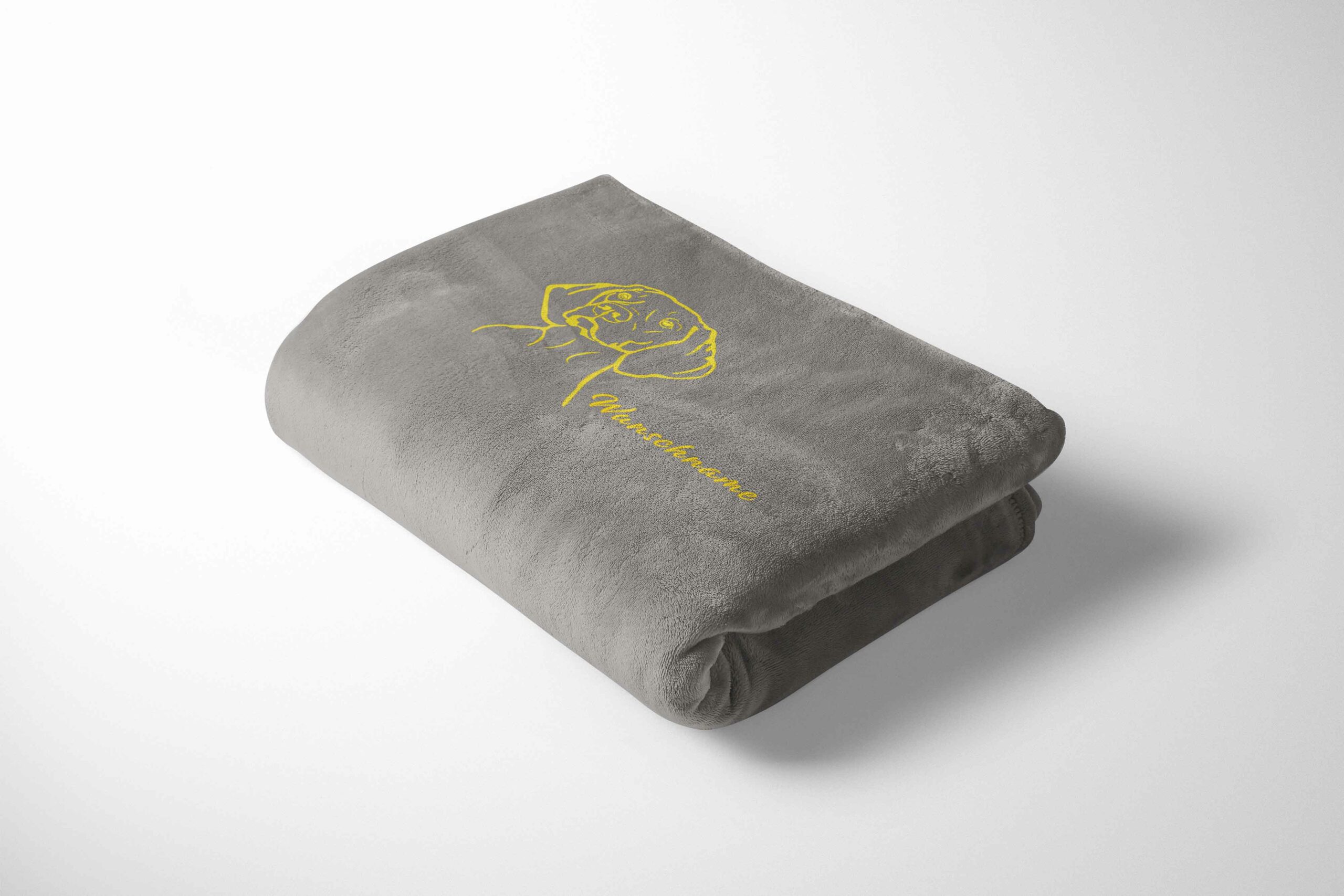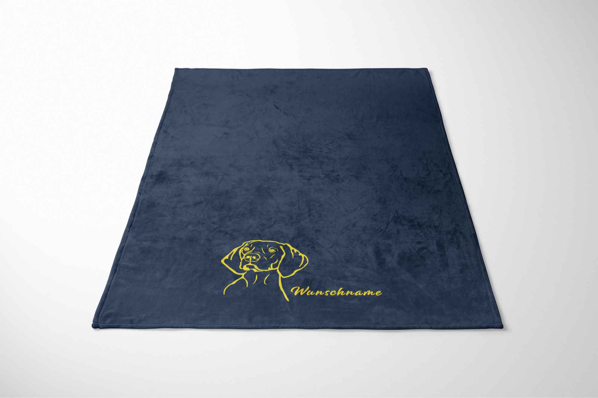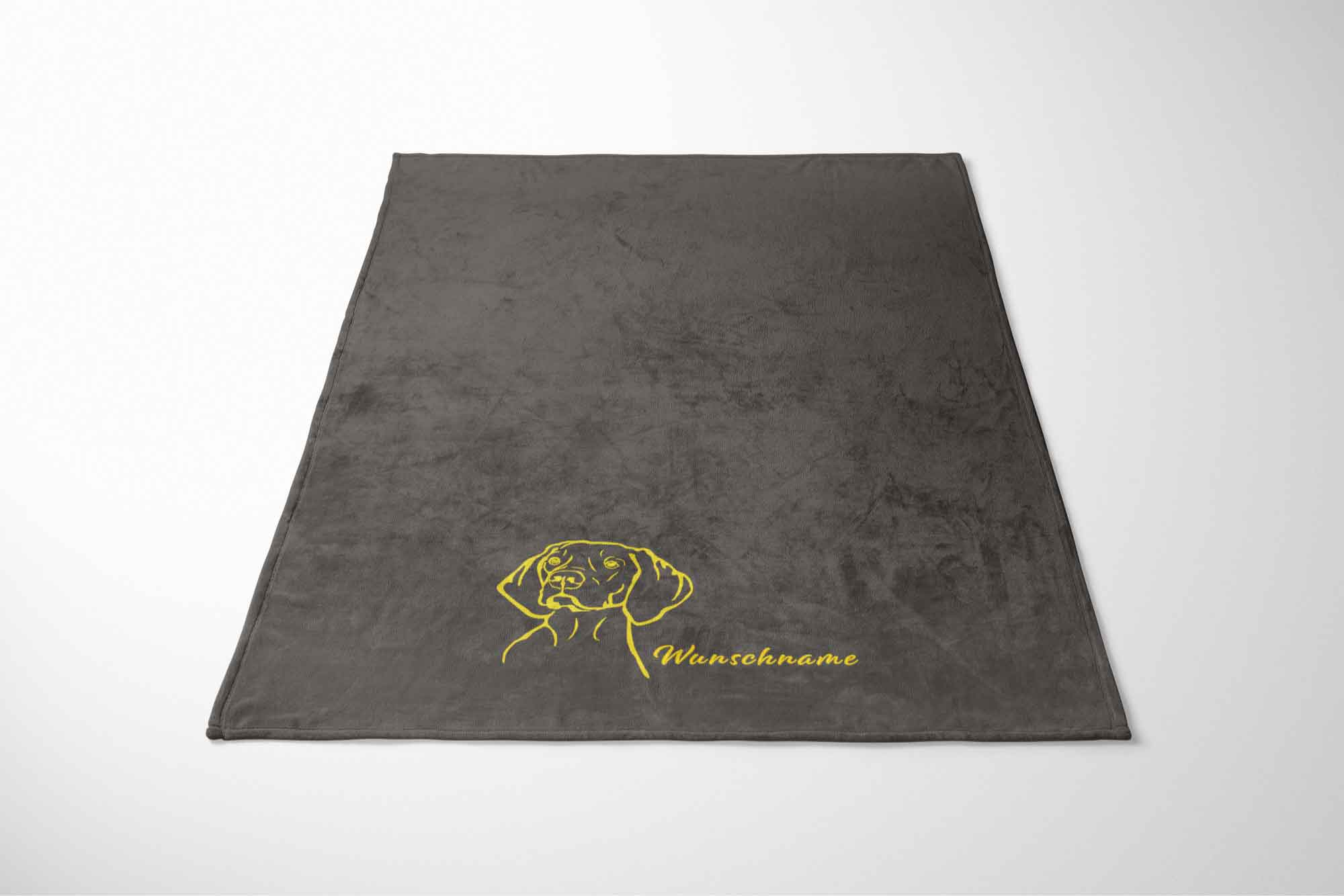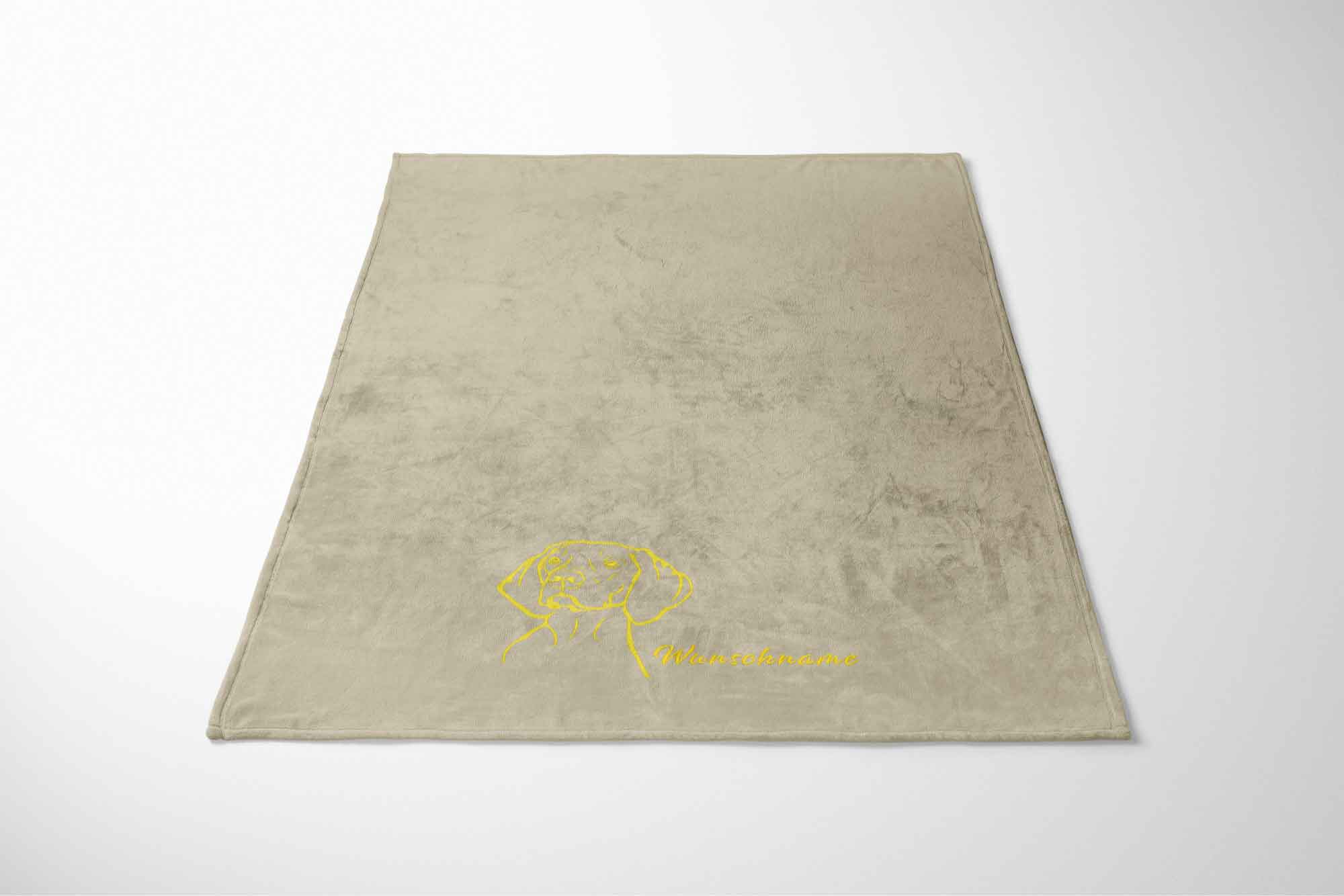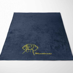 Die Decke wird personalisiert mit einem Vizsla Kurzhaarkopf und deinem Wunschname oder Wunschtext.